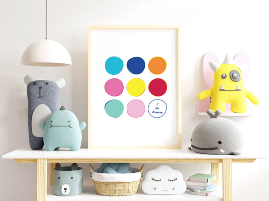 Each poster features bold, playful designs and uplifting affirmations to help children believe in themselves and feel proud of who they are. Whether it’s in a nursery, playroom, bedroom, or classroom, these cheerful prints add warmth and positivity to any wall.