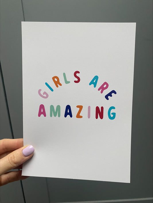 Girls Are Amazing Affirmation Poster in White – Empowering Wall Art for Girls
