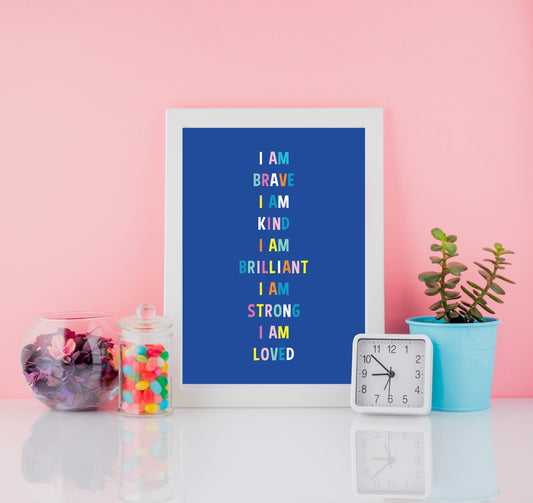 Children’s Affirmation Poster – Blue Positive Wall Art for Kids’ Confidence and Self-Belief