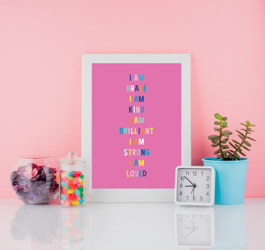 Pink Affirmations Poster for Kids – Positive Wall Art to Inspire Confidence and Self-Belief