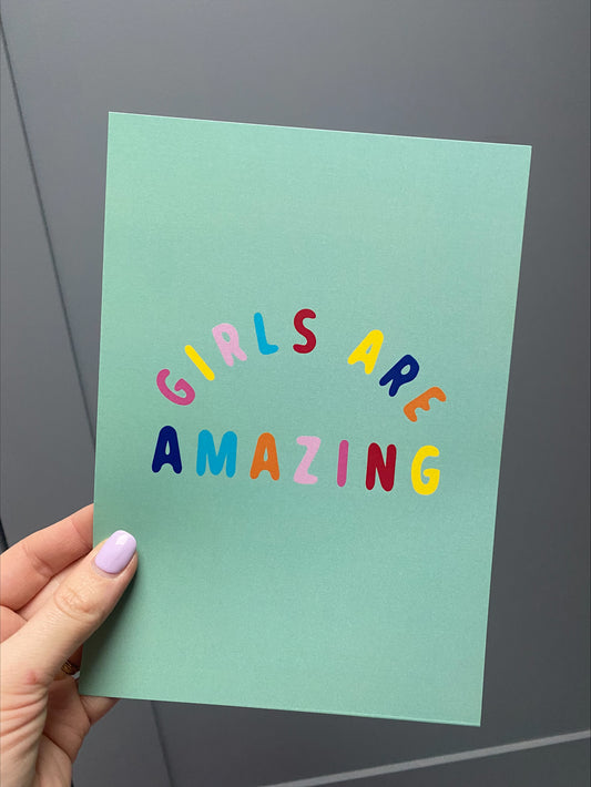 Girls Are Amazing Affirmation Poster in Green – Positive Wall Art for Kids