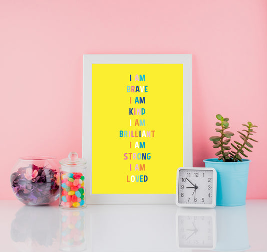 Children’s Affirmation Poster – Yellow Positive Wall Art to Build Confidence and Self-Belief